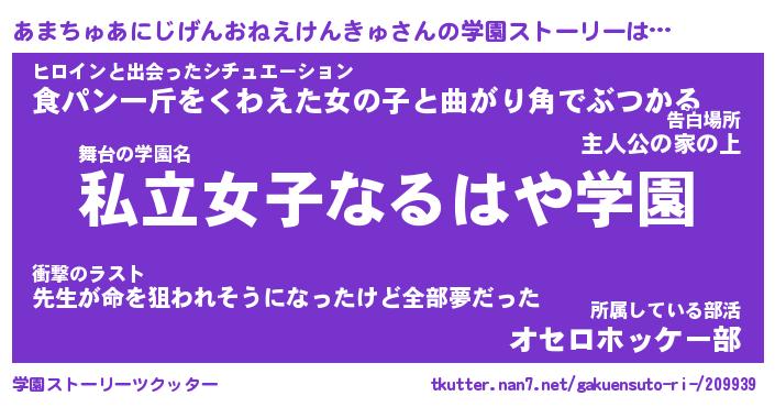| 告白場所 先生の家の上 …「ふぃぎゅこ」 | 2月17日 06:24 |