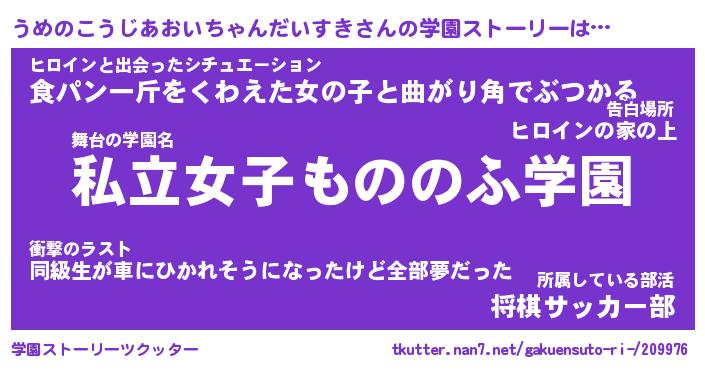 | ヒーロー風カッコイイあだ名 | 『スーパーウメノコウジアオイチャンダイスキ』 |