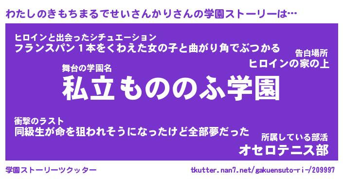 | 胡散臭い通販商品みたいなあだ名 | 『必ず成功するブレスレット…その名も「わたしのきもちまるでせいさんかり」』 |
