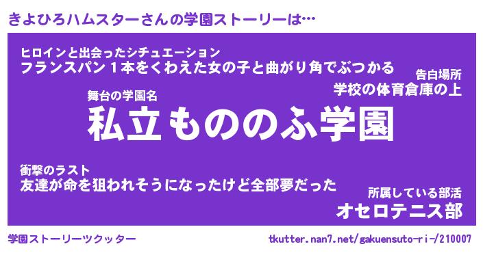 | 伝説のあだ名 | 『伝説の竜騎士きよひろハムスター』 |