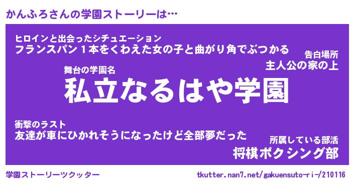 | 告白場所 先生の家の上 …「ふぃぎゅこ」 | 2月17日 06:24 |