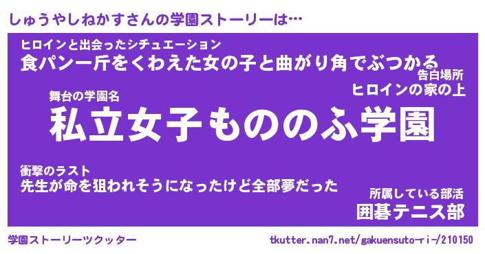 | 告白場所 先生の家の上 …「ふぃぎゅこ」 | 2月17日 06:24 |
