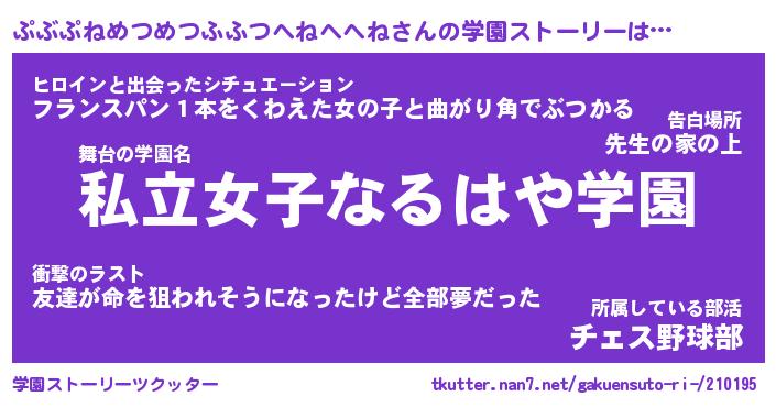 | 告白場所 先生の家の上 …「ふぃぎゅこ」 | 2月17日 06:24 |