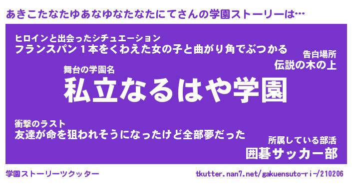 | 告白場所 先生の家の上 …「ふぃぎゅこ」 | 2月17日 06:24 |