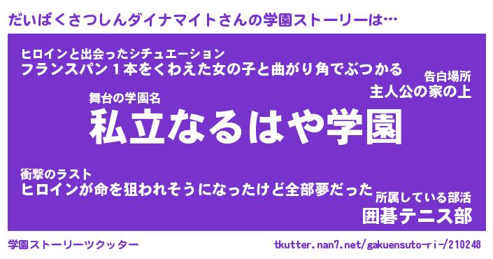 | ヒーロー風カッコイイあだ名 | 『スーパーダイバクサツシンダイナマイト』 |