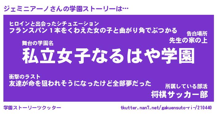 | 男性向けラノベタイトル風あだ名 | 『ジェミニアーノアートオンライン』 |