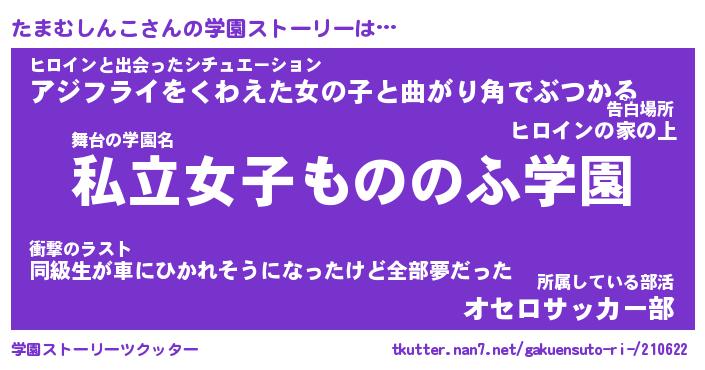| 女子向けラノベタイトル風あだ名 | 『たまむしんこ姫と円卓の騎士』 |