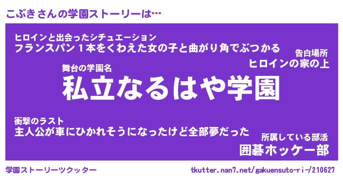 | 女子向けラノベタイトル風あだ名 | 『こぶき姫と円卓の騎士』 |