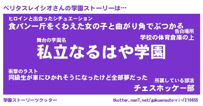 | 女子向けラノベタイトル風あだ名 | 『ベリタスレイシオ姫と円卓の騎士』 |