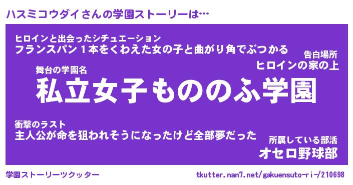 | ヘコむあだ名 | 『ハスふぇ~』『豆乳』『ハスを』 |