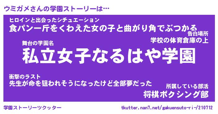 | ファンタジー風あだ名 | 『ウミフェル』『エターナルウミガメー』 |