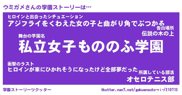 | ヒーロー風カッコイイあだ名 | 『スーパーウミガメ』『天弓騎士ウミ』 |