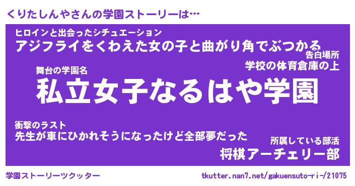 | 女子向けラノベタイトル風あだ名 | 『誰かこのくりたしんやを説明してください! ~契約から始まるウェディング~』 |