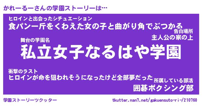 | 女子向けラノベタイトル風あだ名 | 『かれーるー姫と円卓の騎士』 |