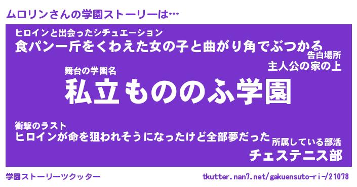 | 女子向けラノベタイトル風あだ名 | 『ムロリン姫と円卓の騎士』 |