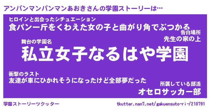 | 学校 | アンパンマンパンマンあおき校長が勤める学校の名前『私立女子にゃんにゃん大学』 |