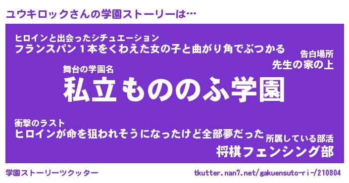| 男性向けラノベタイトル風あだ名 | 『ユウキロックの憂鬱』 |