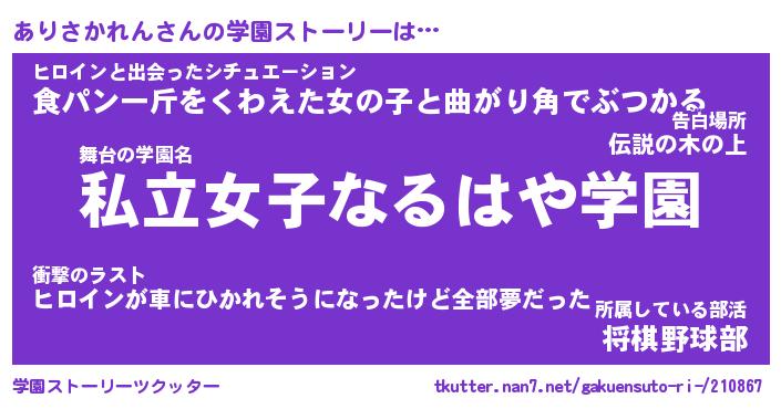 | 男性向けラノベタイトル風あだ名 | 『アリサカレンアートオンライン』 |