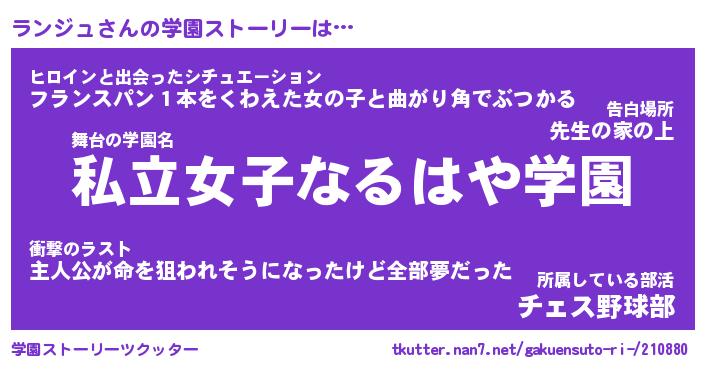 | 女子向けラノベタイトル風あだ名 | 『ランジュ姫と円卓の騎士』 |