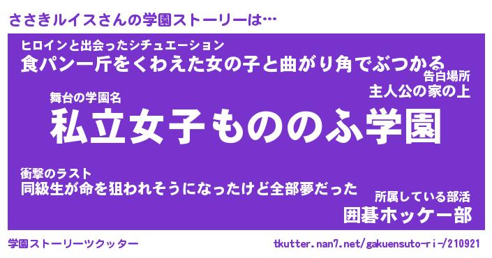 | ツイッター | ささきルイスさんのツイッターID『namakemono_star』 |
