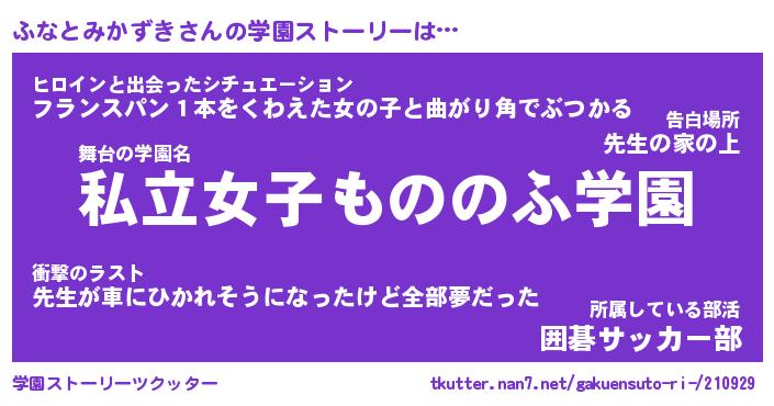 | 女子向けラノベタイトル風あだ名 | 『ふなとみかずき姫と円卓の騎士』 |