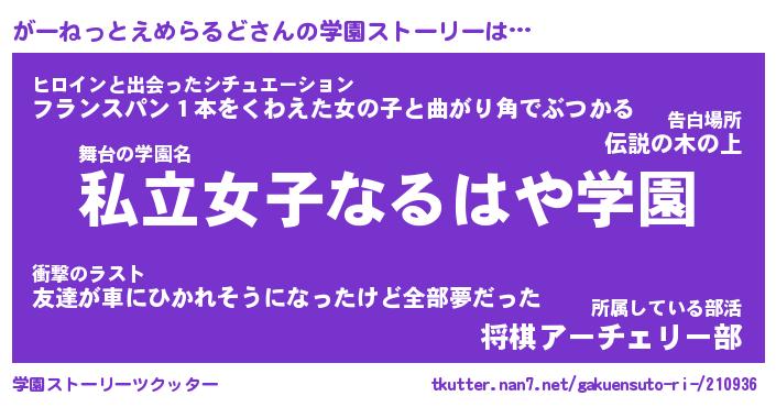 | 告白場所 先生の家の上 …「ふぃぎゅこ」 | 2月17日 06:24 |