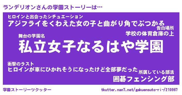 | ヒーロー風カッコイイあだ名 | 『スーパーランデリオン』『暗黒騎士ラン』 |