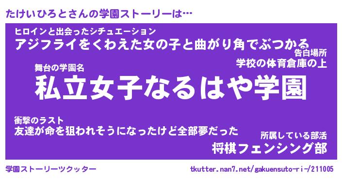 | 女子向けラノベタイトル風あだ名 | 『誰かこのたけいひろとを説明してください! ~契約から始まるウェディング~』 |
