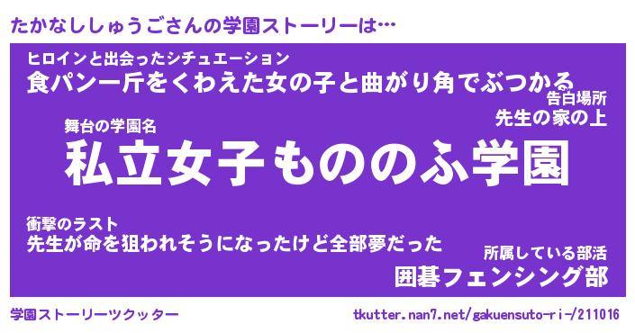 | 肩書あだ名 | 『たかなししゅうご社長』 |