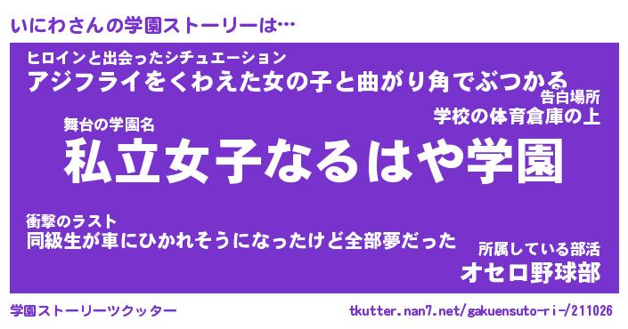 | 伝説のあだ名 | 『封印されしスナイパーいにわ』 |