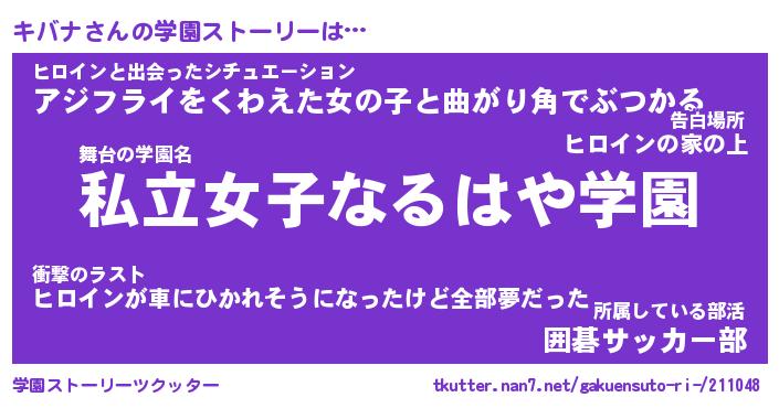 | 男性向けラノベタイトル風あだ名 | 『キバナアートオンライン』 |