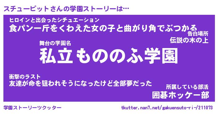 | 男性向けラノベタイトル風あだ名 | 『スチューピットの憂鬱』 |