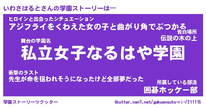 | 肩書あだ名 | 『いわさはると御曹司』 |