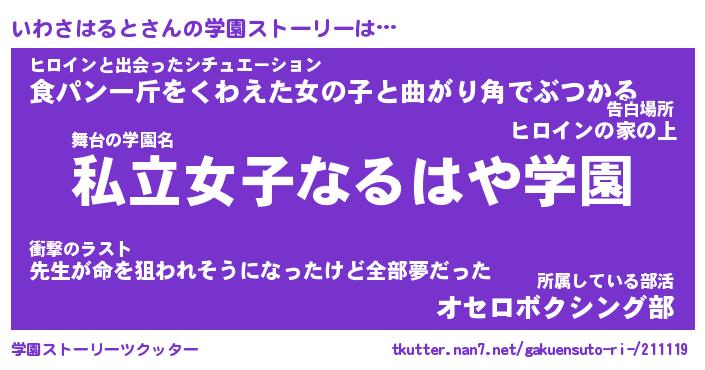 | ファンタジー風あだ名 | 『イワフェル』『ファントムイワス』 |