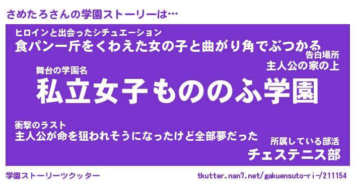 | 意味不明あだ名 | 『ペロリンさめたろ』『永久保存さめたろ』 |
