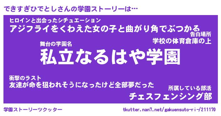 | 先生 | できすぎひでとし先生が勤める学校名『私立ささくれ中学校』 |