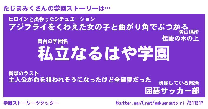| 男性向けラノベタイトル風あだ名 | 『たじまみくの憂鬱』 |