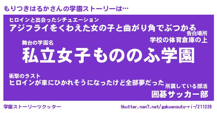 | 男性向けラノベタイトル風あだ名 | 『モリツキハルカアートオンライン』 |