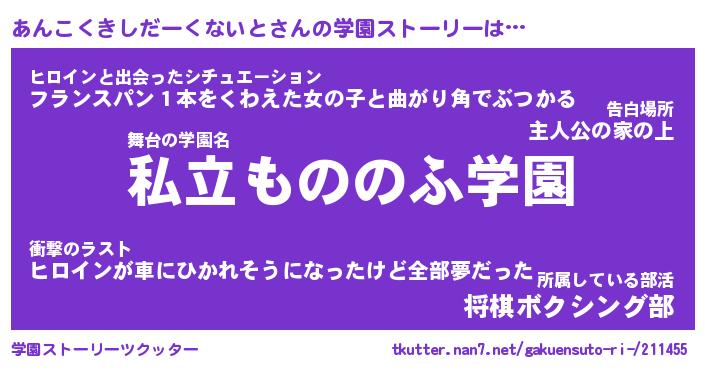 | ヘコむあだ名 | 『あんにゅー』『豆乳』『あんっ子』 |
