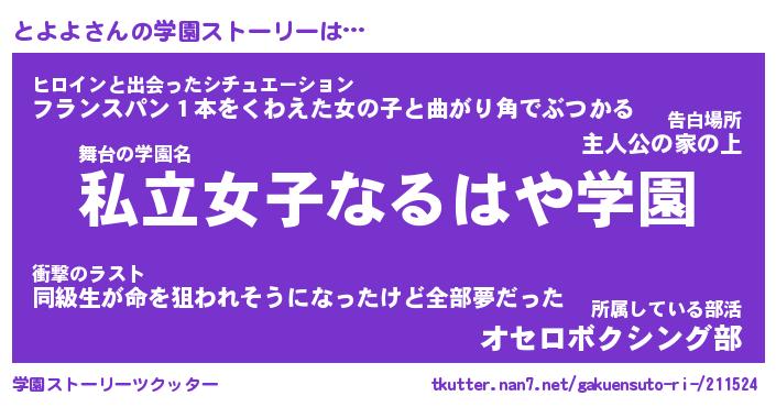 | 男性向けラノベタイトル風あだ名 | 『トヨヨアートオンライン』 |