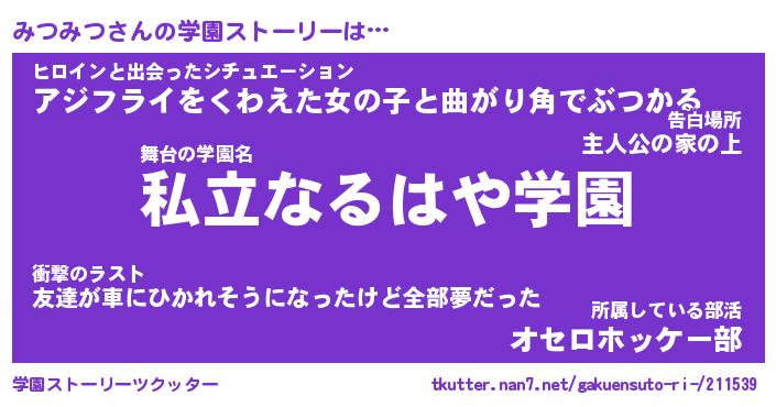 | ファンタジー風あだ名 | 『ミツフェル』『エターナルミツミツー』 |