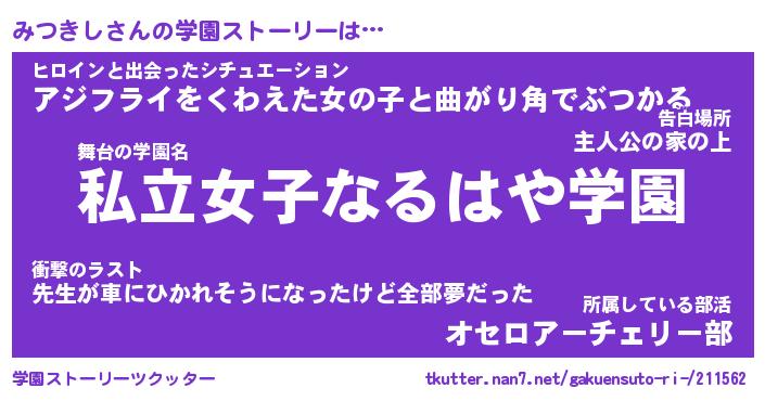 | 告白場所 先生の家の上 …「ふぃぎゅこ」 | 2月17日 06:24 |
