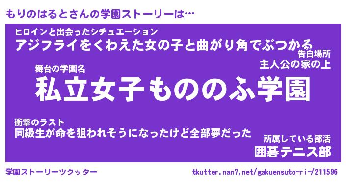 | 男性向けラノベタイトル風あだ名 | 『モリノハルトアートオンライン』 |