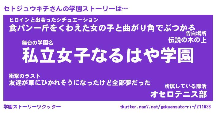 | 男性向けラノベタイトル風あだ名 | 『セトジュウキチアートオンライン』 |