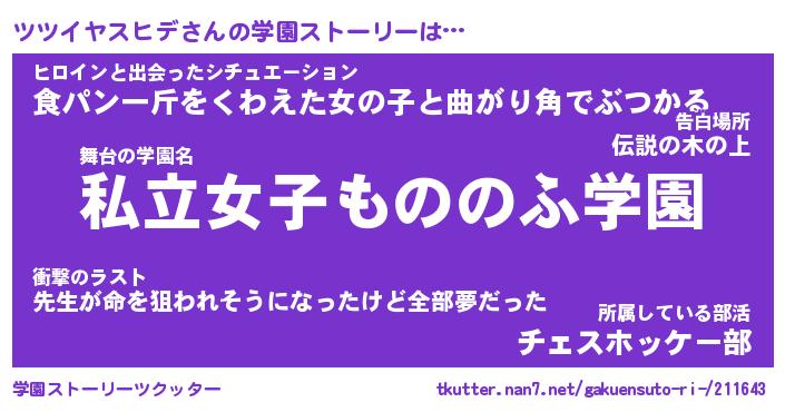 | 女子向けラノベタイトル風あだ名 | 『ツツイヤスヒデ姫と円卓の騎士』 |