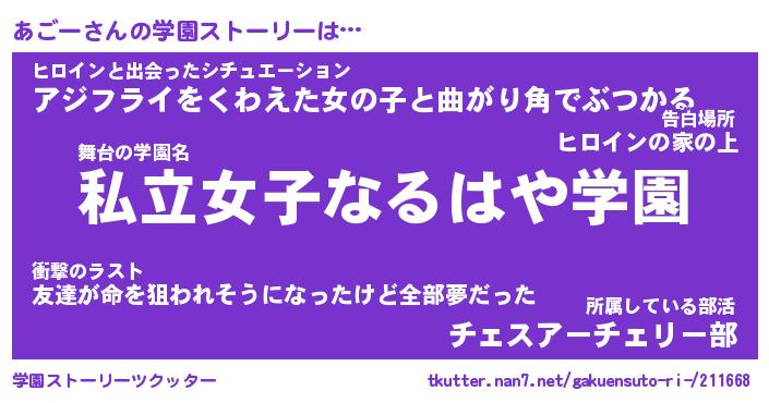 | 女子向けラノベタイトル風あだ名 | 『誰かこのあごーを説明してください! ~契約から始まるウェディング~』 |