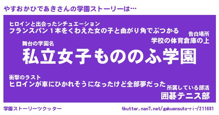 | 女子向けラノベタイトル風あだ名 | 『やすおかひであき姫と円卓の騎士』 |