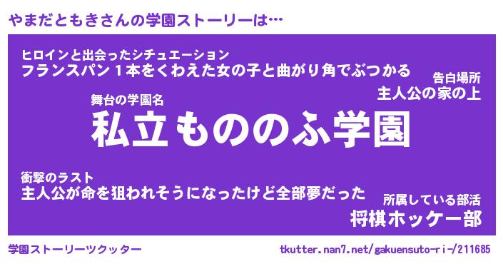 | 男性向けラノベタイトル風あだ名 | 『やまだともきの憂鬱』 |