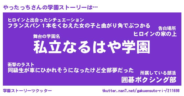| 男性向けラノベタイトル風あだ名 | 『やったっちの憂鬱』 |