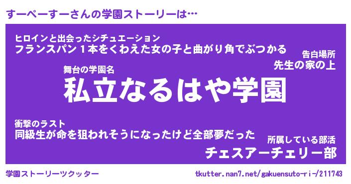 | 男性向けラノベタイトル風あだ名 | 『すーぺーすーの憂鬱』 |